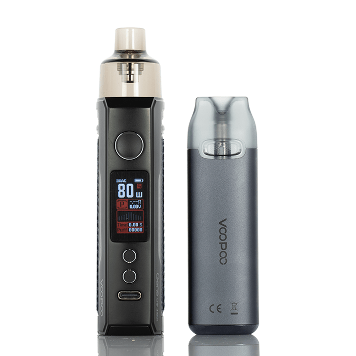 Shop the Voopoo DRAG X & VMATE Pod Holiday Kit, featuring a Drag X Pod Mod and VMATE Pod System to deliver satisfying vapor and delicious flavor. Coming with the DRAG X Pod Mod, a visually striking pod mod that is powered by a single 18650 battery, not included. Outfitted with the PnP Pod that takes PnP Coils, the DRAG X can deliver up to 80W output, unlocking flavors from your favorite eJuice or nicotine salts. Equipped with the GENE.TT Chipset, the DRAG X Pod Mod features an airflow control switch to deliver precise airflow to the installed coil. In addition, the VMATE Pod System is a portable compact vapor delivery system that can hold up to 3mL of eJuice or nicotine salts, powered by an integrated 900mAh battery, and operates off a draw-activated firing system.
