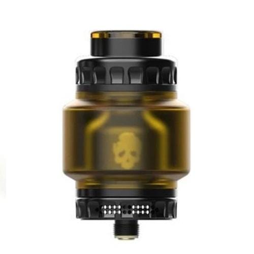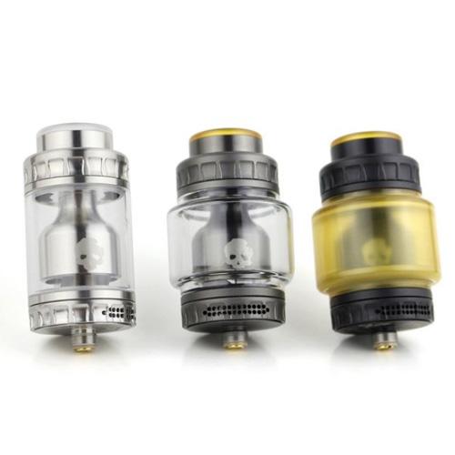 Dovpo Blotto RTA is designed by Sam Parsons from the Vaping Bogan youtube channel. The appearance looks to be modern, thanks in part to the skull print inside the chamber. This rebuildable tank atomizer can be completely detached. It consists of the drip tip, top cap, chimney, glass tube, and the build deck. The new Blotto RTA is all about flavor and versatility. You can run dual coils or single-coil in there, the 242° direct to coil Airflow system provides fantastic flavor like what a dripper does. Three juice reservoirs are included with Blotto by Dovpo: a 2mL standard glass, a 6mL bubble glass and a 6mL bubble tube which is made of Ultem. In this way, you can make the Blotto more portable, give it a bigger juice capacity. Another cool feature is that it includes a bottle opener that also acts as a coil cutting tool, so you'll know how much coil length you'll need each and every install.