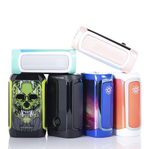 Check out the new Innokin Proton Mini 120W Box Mod, the diminutively sized box mod capturing the greater details of its predecessor, adopting an internal 3400mAh battery, maintaining the extensive temperature control suite and compatibilities, and can save 3 coil memories and can be customized with screensavers as well. Constructed from durable zinc-alloy, the Proton Mini is compact and fits within the palm of the hand but jams a large 3400mAh rechargeable battery within to keep up with the vaping needs of daily on-the-go use. Featuring an extensive temperature control suite that is compatible with wires such as Nickel, Titanium, and Stainless Steel, the Innokin Proton Mini can be utilized by beginners and advanced users, alike. Equipped with a joystick control unit, the Proton Mini Box Mod is intuitive and easy to navigate, providing wattage adjustment among the range of 6-120W. Featuring a large 1.45" TFT Color Display Screen, the Proton Mini 120W Box Mod can display personalized screensavers as well as relevant vaping data. Mounted on the side is the large fire bar, while below the display screen is the fast charge microUSB port to rejuvinate the Proton Mini 120W after delivering satisfying clouds throughout the day.