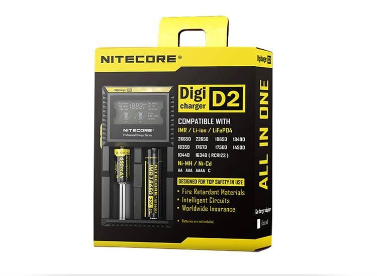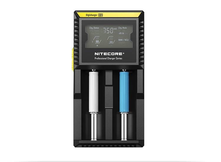 The Nitecore D2 is a universal smart charger compatible with almost all cylindrical rechargeable batteries.The digital LCD screen displays charging progress, voltage, current and time. Charge 2 batteries at one time.